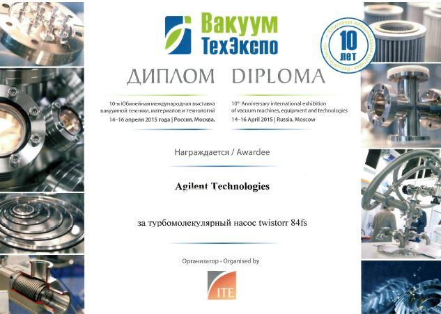 We are very happy to announce that the new Agilent TwisTorr 84 FS was among the winners of the competition held during the show and received the Award "The Best Innovative Product in High-Technology Industry", along with nine other companies, specialized in development, distribution and engineering of vacuum, cryogenic and other types of equipment.