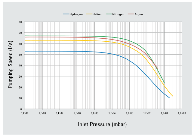 全转速气体流量(与推荐前级泵一起使用) |